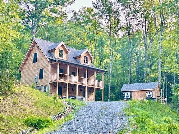 Brand new twin dormered log home. Main level & loft are completed. Lower level is framed & wired, and lower bath w/ shower is set with rough plumbing completed for toilet, vanity & laundry. The lower level is studded and ready for wall finish & flooring. Price will increase as further completion items occur or buyer can assume the finish work and save. The current list price reflects a significant discount to buyers wanting to finish the lower level themselves. This home checks all the boxes for superb vacation living... Perched on a knoll with winter views of the lake and located on the quiet side of the lake, this open concept floor plan offers spacious feel with beautiful huge loft / bedroom. Enjoy the porch off the kitchen for grilling and a view of forest. A 27' porch on the front of the cabin is a great place to hang out with views of the second lot with plenty of room for guests. A tastefully designed kitchen features a beautiful granite top and plenty of cabinets along with a gas range with a griddle top fifth burner. Enjoy a shower or an Air Bubble Soaking bath in this upscale bathroom. Includes hot tub with a reasonable offer. A completed shed is included for your tools, toys or workshop. Lower level completion date by March 1, 2025.