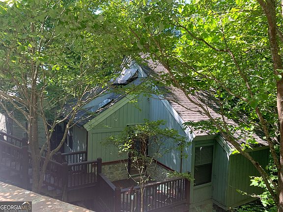 Wonderful opportunity to own a home in the Alpines of Helen! Beautifully maintained above the quaint town near the spas of Valhalla. Gated three bedroom two bath with whimsical furnishings. Hot tub can remain or be removed for more use of the large screened in porch! Besides the screened in porch, you have an entry deck for grilling and a private primary bedroom deck where you can hear the creek babbling below. The main level has up to date stainless kitchen appliances, natural light above the cabinets, open to eat-in kitchen area. Views to the living room include cozy gas fireplace, exposed beams with cathedral ceilings and screened porch. Split bedroom plan on main level with popout closets and loft area big enough for play area or two twin beds of view in the tree tops. Entire house is open and bright but yet cozy and comfortable. Check out the neighborhood amenties: pool, tennis and basketball courts. Drive your golf cart to downtown Helen or neighboring Walle Halle Resort with golf amenities.
