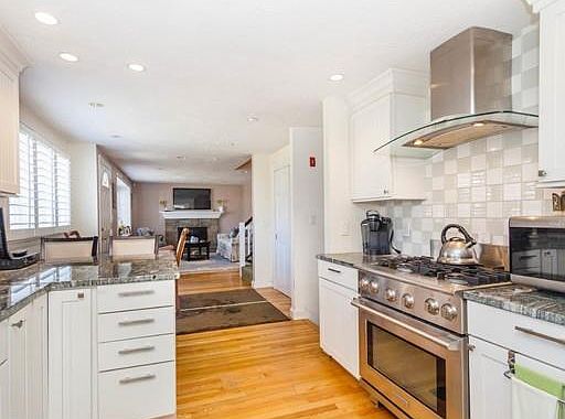 There's more than meets the eye in this completely updated home, which is turn-key ready for you to move in. It boasts a living room with a wood burning fireplace, open design first floor, modern kitchen with stainless appliances and granite countertops, remodelled full and half baths, three bedrooms a generous lower level family room along with a large laundry room. Beautiful large level back yard, with shed and concrete patio. Yard is completely fenced in and landscaped. Amenities include: Hardy Board maintenance free siding, hardwood floors, thermopane windows, Located on a cul-de-sac, it has easy access to local parks, public transport, schools and shopping and all that Needham has to offer. To see it is to love it. Offers if any, due Tuesday 12:00 noon 4/10/18.
