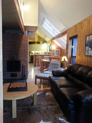 Riverfront Jackson Townhouse - With direct views to the Ellis River, the ability to walk to XC skiing, or drive 5 minutes to the slopes of Wildcat, this home is an outdoor enthusiasts paradise. The tastefully furnished multi-level design features 4 bedrooms, 3 baths, a wall of windows overlooking the river, a handsome brick fireplace, upgraded kitchen & baths, multiple decks & a private riverside patio.