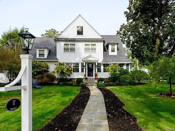 Welcome to 17 Deerfield Avenue, a stunning 1901 Farmhouse Colonial nestled in the heart of Bronxville Manor. This meticulously updated 5-bedroom, 3 full and 1 half-bath home offers nearly 4,000 sq ft of timeless elegance and modern comfort. Enter through the newly renovated glass sunroom and step into an oversized, sun-drenched living room featuring a beautiful fireplace and rich period moldings. At the heart of the home lies an open-concept kitchen, dining, and family room designed for both everyday living and elegant entertaining—highlighted by a show-stopping 10-foot island, 2-inch Carrera marble counters, Sub-Zero refrigerator, Wolf double oven & 6 burner cooktop, classic farmhouse sink, gas fireplace and a perfectly situated mudroom. The private library opens through French doors to a serene terrace with trellis. A beautiful appointed half bath and laundry room complete the first floor. The second and third floors feature five spacious bedrooms and three fully renovated bathrooms. Outside, enjoy a beautifully landscaped corner lot with a private bluestone patio, mature plantings, and a detached garage. Additional highlights include hardwood floors throughout, all new utilities, a new roof and unbeatable location—just 30 minutes north of New York City. This is Bronxville Manor living at its finest-TRULY the one you have been WAITING FOR!