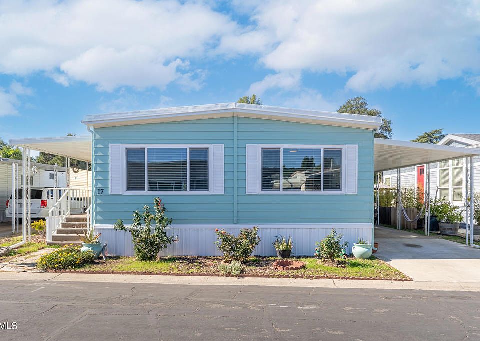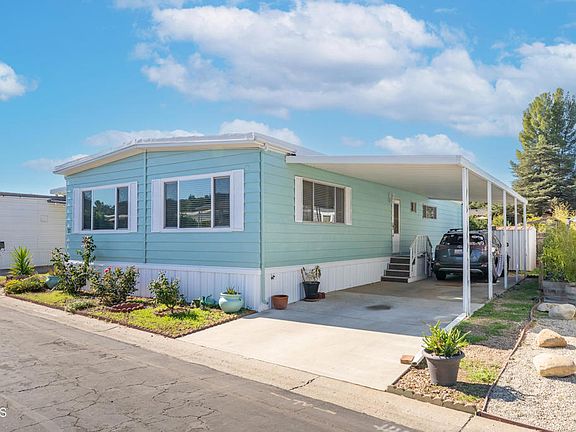Light, Bright, and Move-In Ready!Located in Ojai's only gated 55+ mobile home community, this beautifully updated 2-bedroom, 2 bath residence offers an inviting open layout filled with natural light and charm. The home features numerous upgrades throughout, including newer Venetian blinds, updated flooring, and a newly redone exterior that enhances its curb appeal.The spacious kitchen includes an island cooktop with a stylish range hood, ample storage, and generous counter space, perfect for everyday living or entertaining. A sliding door off the dining area opens to a covered patio, ideal for relaxing outdoors.Enjoy beautiful mountain views from the front porch, surrounded by mature landscaping and gorgeous rose bushes that add a touch of color and warmth to the property. Additional highlights include covered parking, newer plumbing, newer heating and air-conditioning system and a newer water heater.Residents of this desirable community enjoy access to outstanding amenities, including a clubhouse, fitness center, pool, and spa. Conveniently located near local shops, restaurants, and scenic hiking trails, this home offers the perfect blend of Ojai's signature charm.