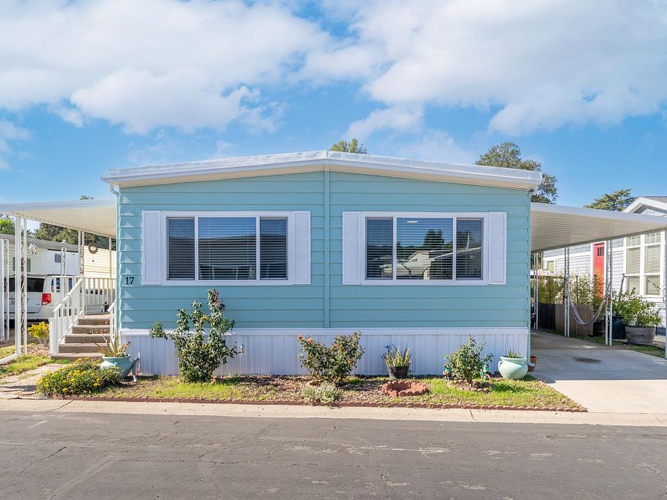 Light, Bright, and Move-In Ready!Located in Ojai's only gated 55+ mobile home community, this beautifully updated 2-bedroom, 2 bath residence offers an inviting open layout filled with natural light and charm. The home features numerous upgrades throughout, including newer Venetian blinds, updated flooring, and a newly redone exterior that enhances its curb appeal.The spacious kitchen includes an island cooktop with a stylish range hood, ample storage, and generous counter space, perfect for everyday living or entertaining. A sliding door off the dining area opens to a covered patio, ideal for relaxing outdoors.Enjoy beautiful mountain views from the front porch, surrounded by mature landscaping and gorgeous rose bushes that add a touch of color and warmth to the property. Additional highlights include covered parking, newer plumbing, newer heating and air-conditioning system and a newer water heater.Residents of this desirable community enjoy access to outstanding amenities, including a clubhouse, fitness center, pool, and spa. Conveniently located near local shops, restaurants, and scenic hiking trails, this home offers the perfect blend of Ojai's signature charm.