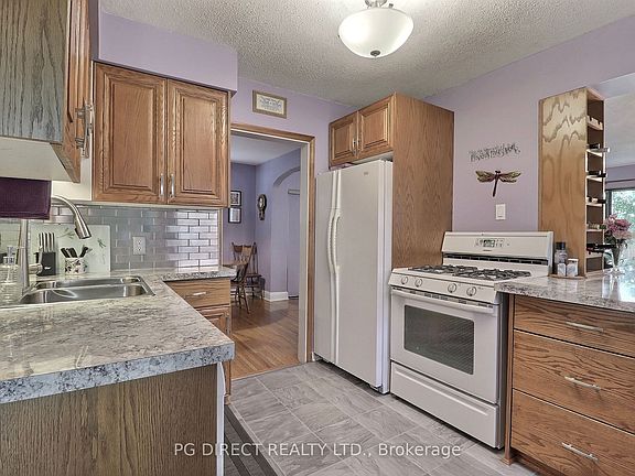 Visit REALTOR website for additional information. Nestled on a quiet, mature cul-de-sac in East London, this beautiful two-storey home offers the perfect blend of comfort, convenience, and outdoor serenity. Just minutes from all amenities, Kiwanis Park, and with easy access to the 401/402, the location can't be beat. The large, fully fenced yard is a private retreat featuring lush landscaping, a tranquil pond, spacious deck (2021), and patio ideal for relaxing or entertaining. Inside, you'll find an abundance of natural light throughout. The main floor boasts elegant quarter-cut oak flooring, a living room, dining room, an open family room with gas fireplace and second eating area, and a stunning kitchen with an oversized island. Upstairs offers 3 bedrooms and a full bath. The finished basement adds valuable living space, perfect for a rec room, home office, or guest area and includes a full bath/laundry room, and plenty of storage. Additional features include a detached garage, parking for up to 5 vehicles, updated roof (2020), A/C (2020), and new sewer liner (2023). A rare find in a sought-after neighbourhood!
