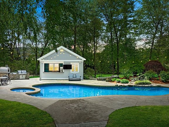 Welcome home to this 4 beds 2.5 bath 4000 sq. ft. colonial with an outdoor Oasis on a sprawling 3 ½ Acre lot in Norton’s Premier Rosewood Estates. Outdoor Oasis features a propane heated in-ground pool with Jacuzzi, waterfall feature, Pool House with built in wet bar, Outdoor TV with speaker system, Custom Built Pizza Oven, Outdoor Kitchen, Outdoor Shower, Chipping / Putting Green, 24x24 out-building with garage door. Recent updates include HWH 2022, Windows 2021, Pool Equipment and Heater 2020, Kitchen & Bathrooms 2018, Central Air & Heat 2018, Basement Pellet Stove 2020, Roof 2012 and Pool and Pool House 2008. Other amenities include, Artisan Well for Irrigation, EV Plug in 2.5 car garage, Solar Panels, Gas Fireplace, 500 Gallon owned Propane Tank, Natural Gas Heat and Whole House Back-Up Generator, First Floor Surround Sound, Finished walk-out basement with Wet Bar. Conveniently Located close to 495.