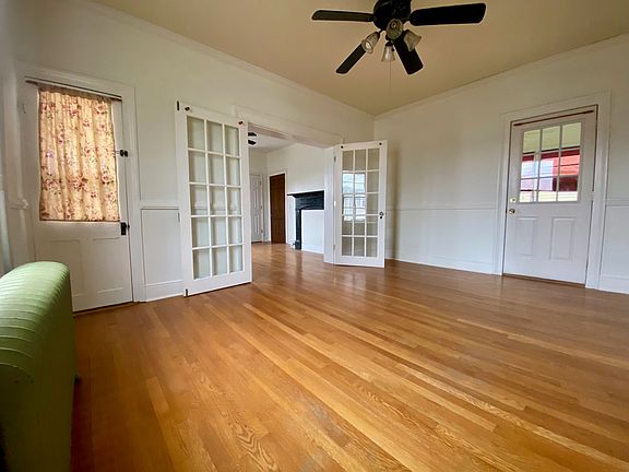 Though listed as a one-bedroom, it includes a bonus room suitable for an office or child's bedroom. Featuring a spacious kitchen with beautiful custom cabinets, fireplace mantels in the living room and bedroom, walk-in closet, an updated bathroom, and wrap-around porch. In addition to generous storage inside, basement storage is also available.