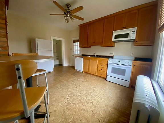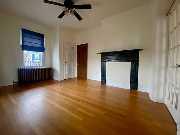 Fresh paint, new wiring, natural gas radiator heat, washer/dryer, dishwasher, and off-street parking. The shared yard is landscaped with a privacy hedge and space for vegetable gardens.