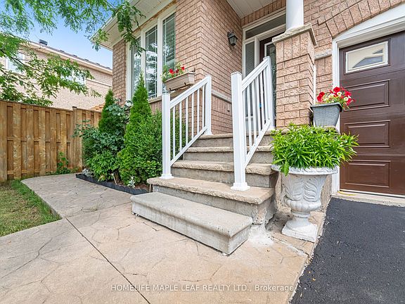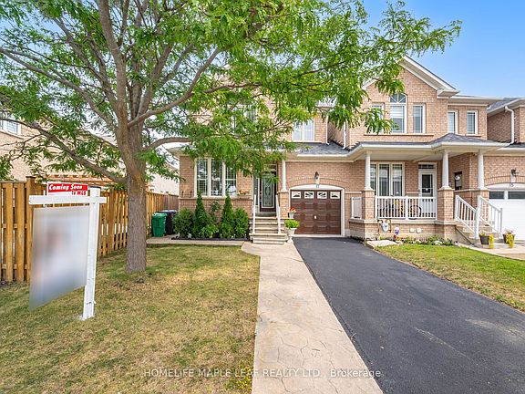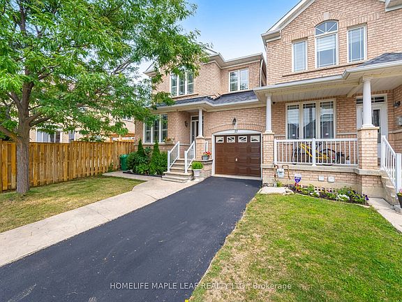 Beautiful link-detached home in the desirable Fletchers Meadow community! Features 3 spacious bedrooms, 3 bathrooms, and an extra-wide stamped concrete driveway. Enjoy 9 ceilings on the main floor, with a bright and open layout that includes living, dining, and family rooms. Interior finishes include parquet flooring, ceramic tiles, upgraded fireplace mantle, and oak staircase. Large windows throughout offer abundant natural light. The primary bedroom features a full ensuite. No sidewalk in front, offering ample parking. Cold room and 3-piece rough-in in the basement. Located on a wide lot in a child-safe neighbourhood, close to schools, parks, transit, and all amenities. Move-in ready! Conveniently Located Near McLaughlin And Wanless, With Easy Access To Highways 410, 407, 401, And 403, As Well As Brampton Transit, The Future Hurontario LRT, And Mount Pleasant GO Station. Walking Distance To Reputable Schools Like St. Lucy Catholic Elementary And Public Schools, And Just Minutes From The Cassie Campbell Community Centre, Parks, Grocery Stores, Restaurants, And Places Of Worship. Come And Fall In Love With This Beautiful Home!