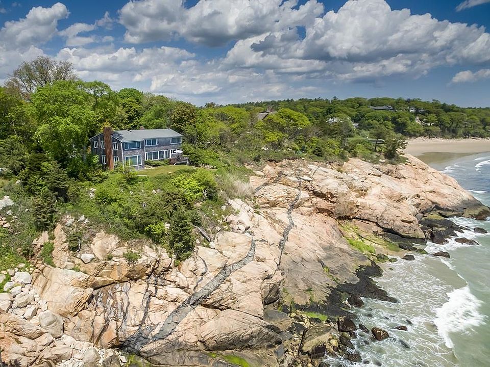Commanding ocean views from this bright waterfront contemporary. Perched high upon a bluff, this 5 bdrm 3.5 bath home is a manageable size with tremendous views. Oceanside rooms have expansive windows that feature the ever changing mood of the Sea. Low tide provides a spectacular sandy beach at the base of the rocky coastal bank for fishing & frolicking in the waves! Built in two phases, the original house has the ability to separate the fireplaced family room from the formal dining room by a set of glass doors that never close off the mesmerizing view. The large retro kitchen has a picture window above the sink counter and sliders that provide access to a much used deck. An office/library off the kitchen allows for expansion. Across a two story glass foyer in the addition is a sunken great room with fireplace and wetbar, 1/2 bath & mudroom. On the 2nd fl, 4 bdrms and 2 baths connect by balcony to a large master suite. Fantastic neighborhood-a short distance from town and Singing Beach