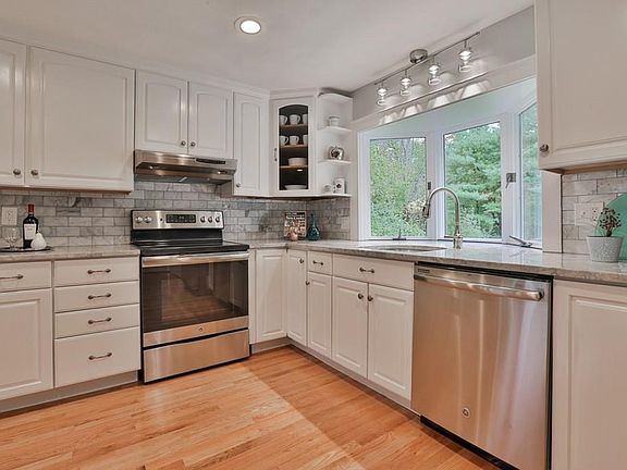 WOW! Complete home remodel of this adorable ranch located in the desired PINEFIELD neighborhood area. Hardwood floors throughout entire home. New windows. Bright and sunny with private scenic backyard. Beautiful fire placed living room with recessed lighting, custom new wainscoting, crown molding, brand new hardwood floors, exterior access to deck. The kitchen offers living/dining room combo with new recessed lighting, gorgeous new marble counters, carerra marble backsplash, all new stainless steel appliances, center island. Bathroom was completely remodeled with marble floors, wainscoting, new chrome fixtures, frameless sliding glass door, new marble counters. Bright/sunny master bedroom with chair rails and gleaming hardwoods. 2 other beautiful bedrooms. The basement is freshly painted, has a new bulkhead & windows. New HVAC system with NEST thermostat system. New 200 amp electrical. Professionally landscaped. Doyon school district, school bus picks up in front of the house!