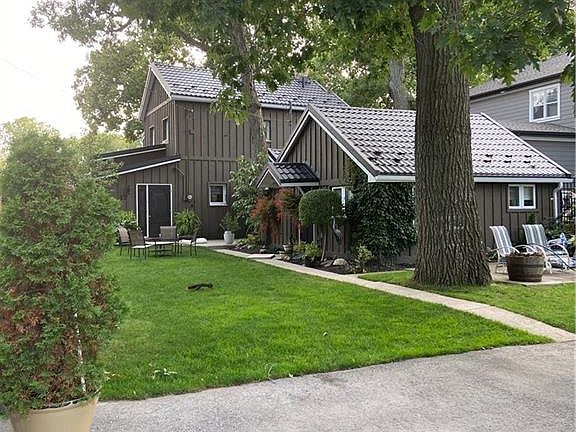 Harbourfront Lakeview in Centre of Grand Bend what more could you want. Board and Batten concrete block century home has been well maintained and offers one of the largest lots in the village. Main house has open kitchen/living area with formal dining room that could be converted to another main floor bedroom. Loads of privacy as master suite has private sitting and office area while your family and guests can enjoy separate two bedroom GUEST HOUSE with its own kitchen living area. Landscaping is meticulously done with patios and seating areas all designed to offer optimum views of the best sunsets and boat traffic all day long. New Metal Roof with 55 year warranty and newer gas heating system. Dockage available at your property line by municipality.