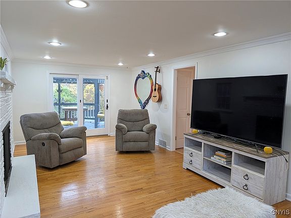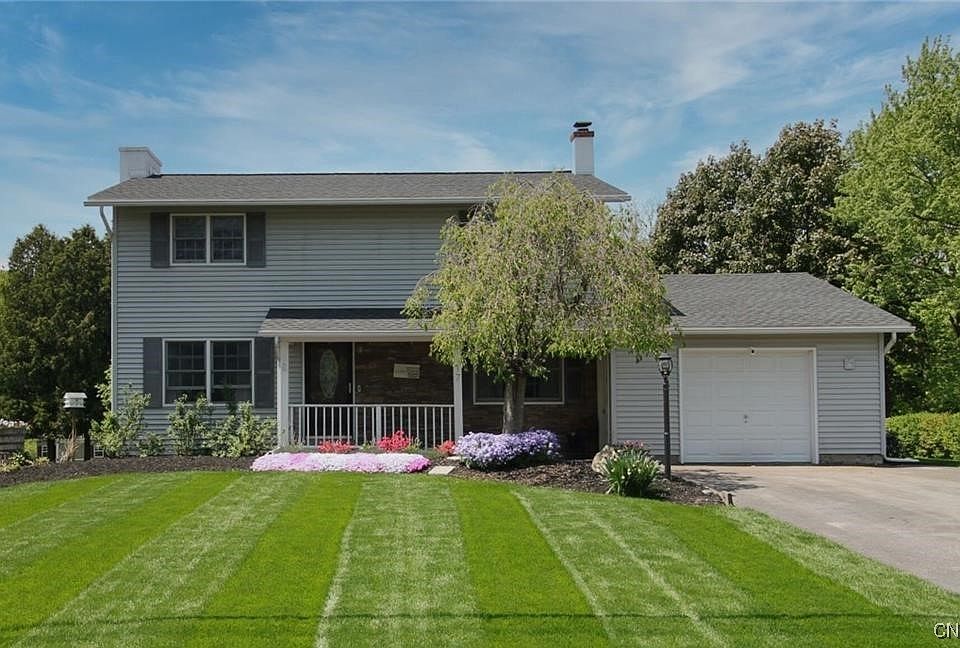 This light-filled 5-bedroom Colonial in the desirable Scenic Hills neighborhood and West Genesee School District has so much to love! Inside, the fully renovated kitchen features white cabinets, granite countertops, and new stainless steel appliances(2025). A convenient first-floor laundry and half bath sit just off the kitchen, plus a lovely formal dining room with new lighting and a farmhouse modern feel. The living room offers hardwood floors, a cozy wood-burning fireplace, and tons of natural light. Upstairs are four bedrooms and a full bath. The finished lower level adds a 5th bedroom with egress, full bath, playroom, and workroom — great for a teen suite or guests. Fresh paint, stylish new lighting, a newer roof, and a 2020 HVAC system make this home move-in ready! Outside, enjoy a large, private backyard with a deck, gazebo, patio, and shed. All this just minutes from Wegmans, Costco, Township 5, and endless shopping and dining — the perfect blend of comfort and convenience!