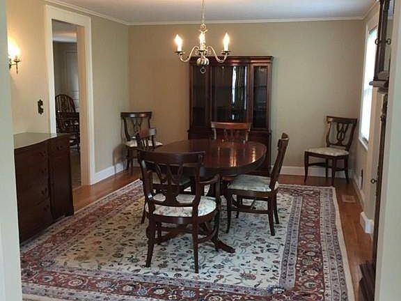 4 bedroom, 2 bath, 2 garage Cape with gas heat and central air conditioning. Expanded kitchen/family room and recently added cathedral ceiling screened porch. Abutting conservation land, the large back yard is level and edged with flowering trees.