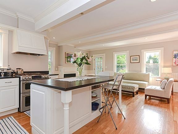 Wonderful bright village colonial in Beverly Farms. Sunny and open kitchen with bright sitting area with gas fireplace and wet bar that leads to patio and fenced yard with perennial and vegetable gardens. Large family room with fireplace and plantation shutters; living room with plantation shutters, open formal dining room with paneled walls. New main bathroom extra large glassed shower, double vanity sink and radiant heated floors. Second full bath has glass shower, marble tile. Basement is partially finished. New rubber roof and newly painted. Great location on a quiet street and close to the village, its restaurants and coffee shops, Dix Park, commuter rail and West Beach.