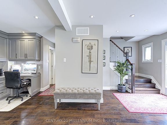 Welcome to this stunning, move in ready home in an established family neighbourhood close to several schools, parks and recreation facilities. This home has been thoughtfully renovated, with a full addition (2010) at the back adds to the living space. Every detail has been carefully considered, offering the perfect balance of style, comfort, and functionality. The spacious open-concept main floor features a gourmet kitchen designed with custom cabinetry, high-end stainless steel appliances, including a 6 burner gas Thermador stove, quartz countertops, and an expansive island which is ideal for cooking, entertaining, and gathering with family. The main floor also includes office space with custom cabinetry and amain floor laundry. The spacious primary bedroom has a vaulted ceiling and an ensuite shower that has spa like fixtures and a balcony. Basement includes a bedroom and a 4 pc bath with loads of storage space and entertaining space including a wet bar.
