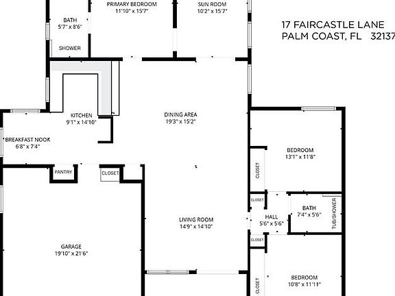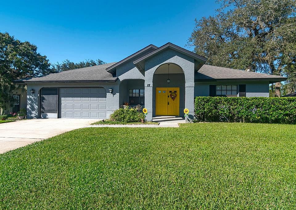 Welcome to this charming 3/2 block construction home located in the northern Palm Harbor area. NO HOA! Priced to sell! Enjoy morning walks on the near by paved scenic nature trail system, or bike the trail to the Island Walk Plaza. Plus you’re only 6 miles to Jungle Hut Beach Access! Home features vaulted ceilings, a split floorplan, spacious living room, open dining area, and multiple linen closets. Updated kitchen offers a pantry closet, breakfast counter and cozy eat-in nook. Comfortable sunroom is ideal for relaxing year-round. Primary bedroom has an ensuite with tiled shower, natural light, walk-in closet, and direct access to the sunroom. The two-car garage is equipped with a handy utility sink and screen sliders! High and dry yard with an irrigation system on well, plus a 140 sq ft garden shed for extra storage. This home is ideally situated near popular city and state parks, including James Holland Park, featuring pickleball and tennis courts, a kids’ playground and splash area, dog park, and baseball fields. Shopping, dining, and medical facilities are just minutes away. Outdoor enthusiasts will love the proximity to Jungle Hut Beach access (6mi), Washington Oaks Gardens State Park (9mi) and Princess Place Preserve (7mi). Historic St. Augustine is only 30 minutes north, while Daytona Beach International Airport is 35 minutes south. Plus easy access to I-95.