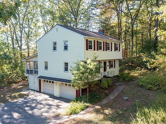Welcome Home to this traditional 8 room, 4 bedroom, 1.5 bath Colonial lovingly maintained by the original owner. The warm and inviting family room features a gas fireplace, perfect for cozy gatherings. Enjoy the convenience of natural gas cooking and heating, a first floor laundry room, and a two car garage with electric doors and keyless entry. The heating system was updated in 2015, and the kitchen refrigerator, washer, and dryer are included in the sale. Relax on the screened-in porch overlooking the picturesque wooded lot along a scenic country road. Recent connection to town sewer for added convenience. Bring your decorating ideas and make this well-cared-for home your own! Excellent commuter location and top-rated schools complete the package.