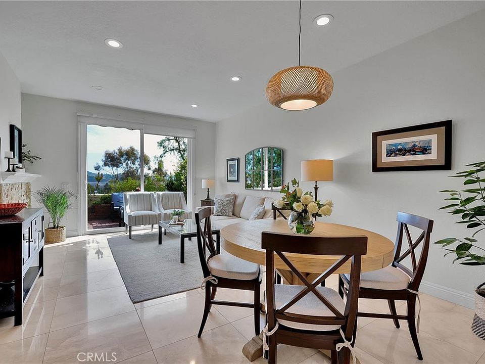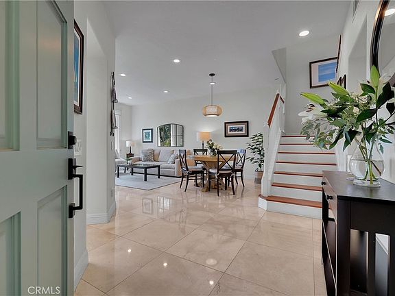 Elegant turnkey home blessed with a prime corner lot location backing to the canyon with stunning panoramic sunrise, mountains, and peaceful canyon views! Superbly located in the desirable Encore at Marina Hills, this exquisite home has been beautifully designed with gorgeous features throughout providing a graceful living experience. Step inside and soak in the light filled interior, luxurious marble tile floors throughout, recessed lighting, and a well-designed floor plan which includes a highly prized main level full bath PLUS a bonus room perfect for an executive home office or 3rd bedroom. The living area is an ideal gathering space around the handsome stacked stone fireplace, with sliding doors providing tranquil views and direct access to the back patio, a perfect indoor-outdoor living space. The timelessly elegant kitchen has been remodeled with natural stone counter tops, high end wood cabinetry, custom glass tile backsplash, upgraded stainless steel appliances, an abundance of storage space, a sunny breakfast nook, and direct access to the patio creating a great flow for entertaining. The full bathroom on the main level has been recently updated with new Quartz topped vanity, new fixtures and faucet, new mirror, and new custom lighting. Upstairs there are 2 bedroom suites, each with ensuite bathrooms, including a spacious bedroom suite with vaulted ceilings, a private view balcony for enjoying the amazing views with an evening glass of wine with a loved one, a walk-in closet, and a spacious bathroom with dual vanities, updated glass tile countertops and shower surround, framed vanity mirrors, and custom lighting. You will fall in love with the private and serene back patio with motorized retractable awnings, outdoor lighting, brick pavers, raised planters, Rainbird timer sprinklers and a built-in gas line for BBQ, an ideal haven for taking advantage of cool ocean breezes and enjoying the stunning views! Additional fine features and improvements include upgraded energy efficient windows, newer water heater, updated door hardware, installed stair rail banisters, ceiling fans, Nest thermostat, Ring Doorbell, new garage door opener, and Reverse Osmosis water system. Encore amenities include a sparkling pool & spa, lounging & picnic areas. Community re-piped with Pex plumbing in 2018. Close to Marina Hills Park pool, clubhouse, tennis courts, playgrounds, sports fields, & courts, shopping, dining, hiking & biking trails, minutes from local beaches.