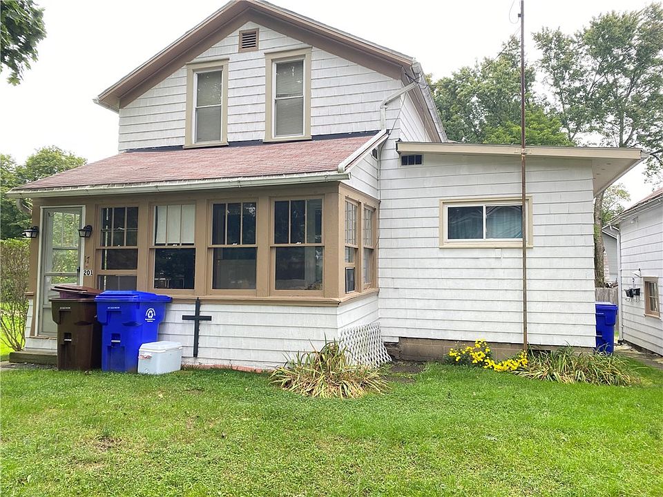 Upstairs could be 2 BR. Full bath on first and second floor. First floor would be LR, DR, KIT. and 1 BR. Double lot. Enclosed porch. Shed. One car garage.