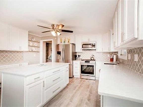 - Kit Dscrp: Flooring - Vinyl, Countertops - Stone/Granite/Solid, Cabinets - Upgraded, Deck - Exterior, Kitchen Island, Stainless Steel Appliances, Open Floor Plan, Remodeled, Gas Stove, Crown Molding