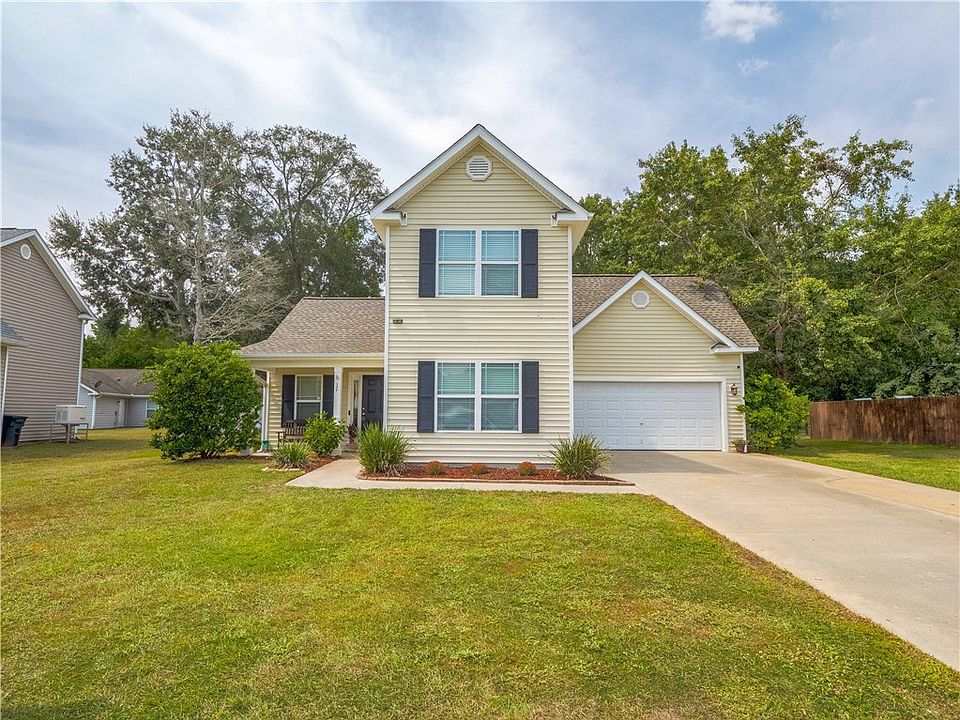 Charming home in a peaceful neighborhood! Welcome to this adorable four-bedroom, two-bathroom home tucked away in a quiet, serene neighborhood! The front porch is just the right size for a pair of rocking chairs—perfect for enjoying your morning coffee. The primary suite is conveniently located on the main floor, while the kitchen features stainless steel appliances, a handy laundry closet, and a deep pantry for all your storage needs. Just off the dining area, sliding glass doors lead to a spacious backyard complete with a storage/tool shed. Upstairs, you’ll find three generously sized carpeted bedrooms (one bedroom is a bonus room that could be used instead as a playroom/office/man cave) with a full-size bathroom. The thoughtful layout offers privacy, comfort, and functionality. The sellers are offering a $2,500 allowance to use towards closing costs. ROOF ONLY ONE YEAR OLD! No down payment required. USDA 100% FINANCING is available for this home location. Talk with your lender for more details.