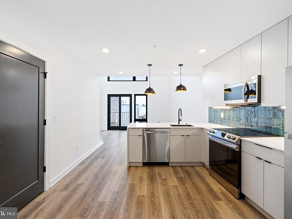 Welcome to your next home in the heart of Fishtown! This one-bedroom apartment is the epitome of urban living, combining modern amenities with unique architectural charm. Step through the door and find yourself in a space where every detail has been curated for your comfort and convenience. The generous open-plan living area is flooded with natural light from the stunning arched windows that offer an ever-changing view of the lively streets below. These windows also lead to your own private roofdeck, where you can enjoy expansive views of the Philadelphia skyline. Imagine hosting friends for an evening under the stars or unwinding with a morning yoga session surrounded by the cityscape. Prepare your favorite dishes in the stylish kitchen, equipped with top-of-the-line stainless steel appliances, a electric stove for the aspiring chef, and plenty of counter space. The teal tile backsplash adds a splash of sophistication to the pristine white cabinetry, ensuring that this kitchen looks as good as it performs. Retreat to the comfort of the spacious bedroom, designed as a sanctuary for relaxation, complete with ample closet space to keep your wardrobe organized. The minimalist design allows you to infuse your personal style into the space, making it truly your own. This apartment doesn't just come with a washer and dryer, central air, and a secure entry system it comes with the promise of a lifestyle that blends the excitement of Fishtown with the tranquility of a private haven. Here, you're not just renting an apartment; you're embracing a lifestyle of luxury and convenience. Don't miss out on the opportunity to make this dreamy Fishtown abode your new address. Renter is only responsible for electric bill. Owner pays water.