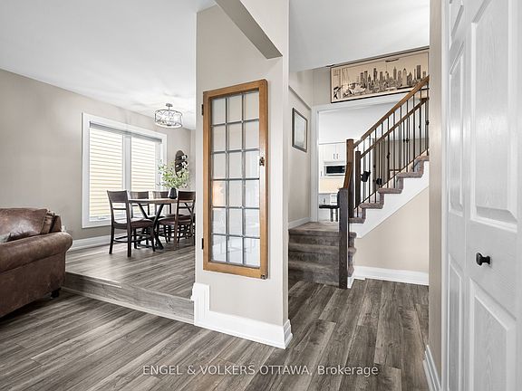 Tucked away on a quiet street in the heart of Barrhaven, this beautifully updated 3-bedroom, 3-bathroom home offers comfort, style, and NO REAR-NEIGHBOURS. The open-concept main floor features 9' ceilings and a bright, spacious layout ideal for both entertaining and everyday living. At the heart of the home, the kitchen boasts a generous island with seating for four, classic shaker-style cabinetry, QUARTZ countertops, stainless steel appliances, and a timeless subway tile backsplash, a perfect blend of form and function. Enjoy the convenience of main floor laundry and relax in the cozy 3-season sunroom, perfect for game nights, darts, or simply unwinding. Step outside to the landscaped backyard with no rear neighbours, backing directly onto the scenic Barrhaven Trail, connecting you to nearby parks and surrounding neighbourhoods. A charming front porch offers a welcoming touch and extra outdoor space to enjoy. Upstairs, you'll find three well-appointed bedrooms, including a primary retreat with a walk-in closet and ensuite featuring a walk-in shower, as well as a beautifully updated family bathroom. The High Energy Efficient Windows ('22) throughout the home enhance comfort and reduce utility costs year- round. The finished basement provides additional living space, including a large workshop/storage area to suit your hobbies or storage needs. Located close to great schools, transit, shopping, and recreation including Walter Baker Recreation Centre and Moloughney Park this home checks every box for families and professionals alike. Take comfort in knowing that the Roof was redone in 2019, Windows in 2022, Electrical panel updated to 200 amp in 2022, Kitchen and Main floor renovated in 2022 and an owned Hot Water Tank in 2022. With its thoughtful updates, prime location, and move-in-ready appeal, this home is a true gem in a beautiful Barrhaven neighbourhood.