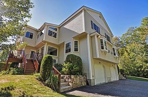 Beautiful 2 Bedroom Condo offering an open floor plan. This home features a lovely entryway with curved stairs leading up to the Living and Dining Room which is a spacious area with neutral carpeting, gas fireplace & a bay window. The kitchen is large with tile flooring, light cabinetry, ample storage and it steps out to a beautiful sundeck. The main level offers a powder room. The second level offers 2 bedrooms, each with its own private bath. The Master Bedroom offers a double sided fireplace, cathedral ceiling, ample closets including a walk in and recessed lighting. The modern bath is spacious with double vanities, separate shower, a jetted tub and a view of the gas fireplace. The second bedroom has double closets and a private bathroom. The lower level offers a 2 car tandem garage and a storage area with laundry. The condo is located at the back of the complex away from the street. Nothing to do but move in & start to enjoy condo living.