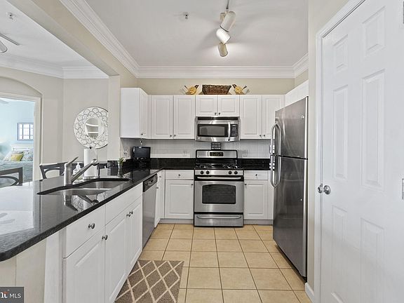 Gorgeous 2 bedroom 2.5 bath condo in the sought after Colonnade at Kentlands Condominiums. This condo welcomes you with an open floor plan and tons of natural light. The kitchen has white cabinets, granite counters, and stainless steel appliances with gas cooking. The kitchen overlooks the living room with crown molding, built-ins, gas fireplace, and french doors leading to the expansive balcony which stretches the entire width of the condo. 2 spacious bedrooms with their own en-suite bath and huge walk in closets. The primary bath has dual vanities, soaking tub, and separate shower. *powder room and side by side washer & dryer off of the foyer* Separately deeded garage parking space just steps from the unit (#221). Top notch community amenities: fitness center, pool, bar/lounge, and much much more! Ideally located just steps from the Kentlands town center with shops, restaurants, and entertainment. This is one not to miss! Seller prefers to use Aspen Real Estate Settlements.