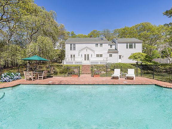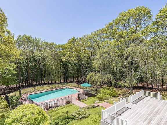 Originally built in 1985 and thoughtfully updated over the years, this secluded traditional home offers the perfect blend of comfort and privacy. Nestled on 1.5 acres, the property is set back from the road, surrounded by mature trees, and backs onto a serene reserve. Designed to maximize natural light, the house is sited facing south, illuminating every room as well as the outdoor decking and pool area. The meticulously maintained home features recently updated mechanicals, ensuring modern comfort. The first floor offers an ideal layout, seamlessly connecting the kitchen, family room, dining area, and living room - perfect for both relaxing and entertaining. The kitchen is equipped with top-of-the-line Wolf and Sub-Zero appliances, catering to culinary enthusiasts. Upstairs, the spacious primary suite includes a private study, while two well-proportioned bedrooms share a hallway bathroom. An additional large suite, accessed via a separate staircase, provides a private retreat for guests or extended family. The lower level is designed for entertaining, boasting a built-in bar, billiards area, and media space. A large walk-in cedar closet adds to the home's ample storage options. Located just a short 5-minute drive to the village, this property offers the best of both worlds - the convenience of town nearby and the tranquility of ultimate Hamptons privacy.