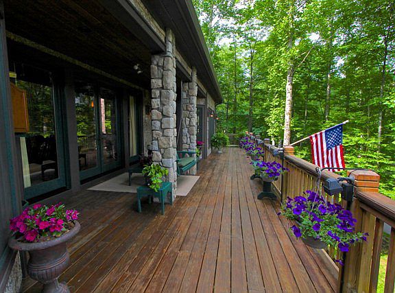 Glens of Grandfather Masterpiece! Priced below current appraisal! This 4BR 5.5BA home is tucked back on 1 acre of well manicured and beautifully landscaped grounds in the rustic subdivision, Glens of Grandfather. At the base of Grandfather Mtn, cross over Watauga River (common area) on paved roads to this private setting. Utmost detail and care was taken in building and designing this spectacular home, offering tons of space for entertaining, indoors and out! Open and covered decks take in mountain views of the Seven Devils ridge-line. The great room features a grand fireplace that stretches up to vaulted ceilings and lofted walkway! A spacious master suite w/ fireplace and large bath is conveniently located on the main level of the home while additional BR suites and offices lie upstairs and down. A 2nd living area with full bar downstairs rests next to the office w/ another living/entertaining space! Stainless steel appliances, sound system, rustic fixtures, utility/storage room, custom woodwork, and rock wall/boulder lined landscaping w/ custom lighting are all icing on the cake!