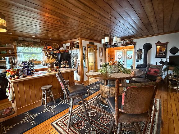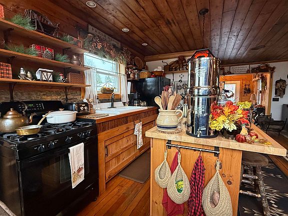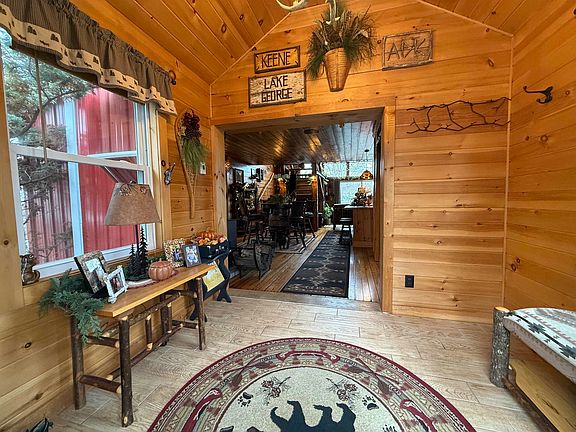 This meticulously maintained and tastefully decorated historical is tucked in a private corner in the Hamlet of Colton on the Raquette River offering 166 feet of waterfront and a .40 acre tip of the island (refer to map) on the reservoir of Lower Higley. The house was first established as a carding mill in the early 1800's preparing wool before it was spun. In the 1930's it was Colton's first fire department on Gustin Square. It now resides on the foundation of the horse barn that housed the horses which pulled the pumpers when there was a fire call. This brings the historical stonework inside giving very unique specialties to the main bathroom and bedroom. This area is surrounded by a covered deck with a panoramic view of the river. Around the corner is a large private patio area that leads to an outside entrance to the main bedroom. As you walk through the main entryway with in floor heating and tongue and groove cathedral ceiling, you enter an open floor plan where you are greeted with a wrap-around panoramic river view of the foothills of the Adirondacks. The large sliding glass doors give you access to the maintenance free deck which overlooks the walkway to the dock. Another window over the antique farm sink gives beautiful light to the kitchen and island. The whole area is detailed in the original ship lap walls and ceiling and is accented with an open antique beam stairway that leads up to a landing with 3 huge windows that give a splendid brilliance to a large open loft area that is finished with tongue and grove cathedral ceiling. Currently used as a guest room it doubles for a great sitting area due to the wall of windows facing the river. Outside features include a 14 x 16 " shed completely finished on the exterior and with interior renovations it would make a perfect guest cottage, workshop (lots of possibilities),a 12X12 wood shed constructed with hemlock, a potting shed and a chicken coop. There are perennial gardens filled with lilies, irises, hydrangeas, and a flowering crab tree. Updates include new windows, siding deck, dock and roof just to mention a few. Don't miss out on this opportunity to own your own piece of heaven!!
