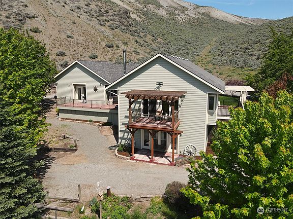 This stunning modern house in excellent condition, sturdy construction, and open layout is perfect for entertaining. Spacious living room & kitchen flow seamlessly together. Enjoy breathtaking views of the valley from the comfort of your own home and step outside onto the multiple decks allowing you to fully immerse yourself in the beauty of your surroundings. Updated appliances and beautiful finish work throughout this lovely home. Explore the canyon and rocky mountain on your property. Cherry trees, peach tree & pear tree plus large garden area. Irrigated pasture area and yard with outdoor arena. Attached garage, detached carport, full RV pad, barn/chicken coop all just minutes from town. Don't wait to come see this exceptional property.