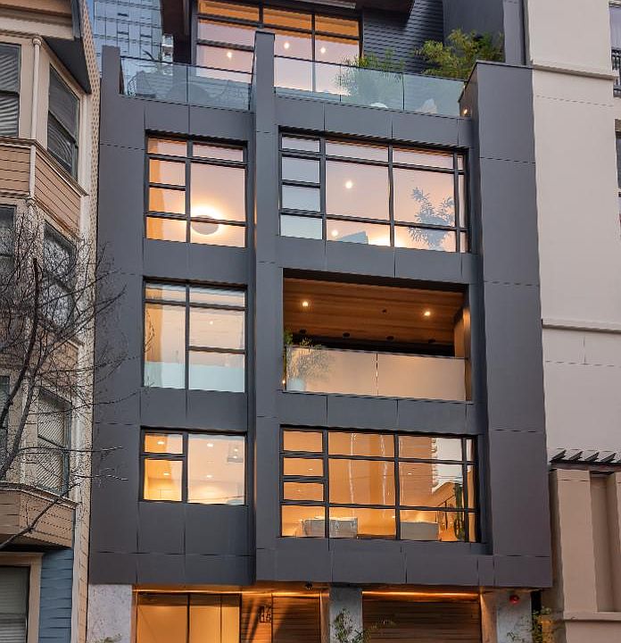 17 Guy Place is a 5 bedroom, 6 bath 5,115 sqft custom penthouse condominium residence in a boutique two residence townhouse located amongst San Francisco's most prestigious luxury towers and residences. The home is set in SF's 150 year old Rincon Hill neighborhood, one of The City's Original Seven hills along with its famous neighbors, Nob Hill and Russian Hill. The expansive five level residence is accessed by dramatic stairway or private elevator and delivers commanding views of The City skyline from every floor and direct access to the residence's private terraces with stunning City views. The custom kitchen is wrapped in Calacatta Italian marble and is a perfect pairing with the homes white oak floors.