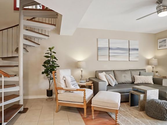 Fully Furnished two story unit in sought after Shelter Cove. Steps from restaurants, shopping, and the marina. The unit has a large master suite on the upper level featuring a large tub, seating area and washer/dryer. Main living area has living room, dinning nook and fully equipped kitchen. Patio with peak-abo water view in high tide. unit facing parking lot. One parking permit for the on-site lot. Shelter Cove has additional parking lots that can be used for guests.
