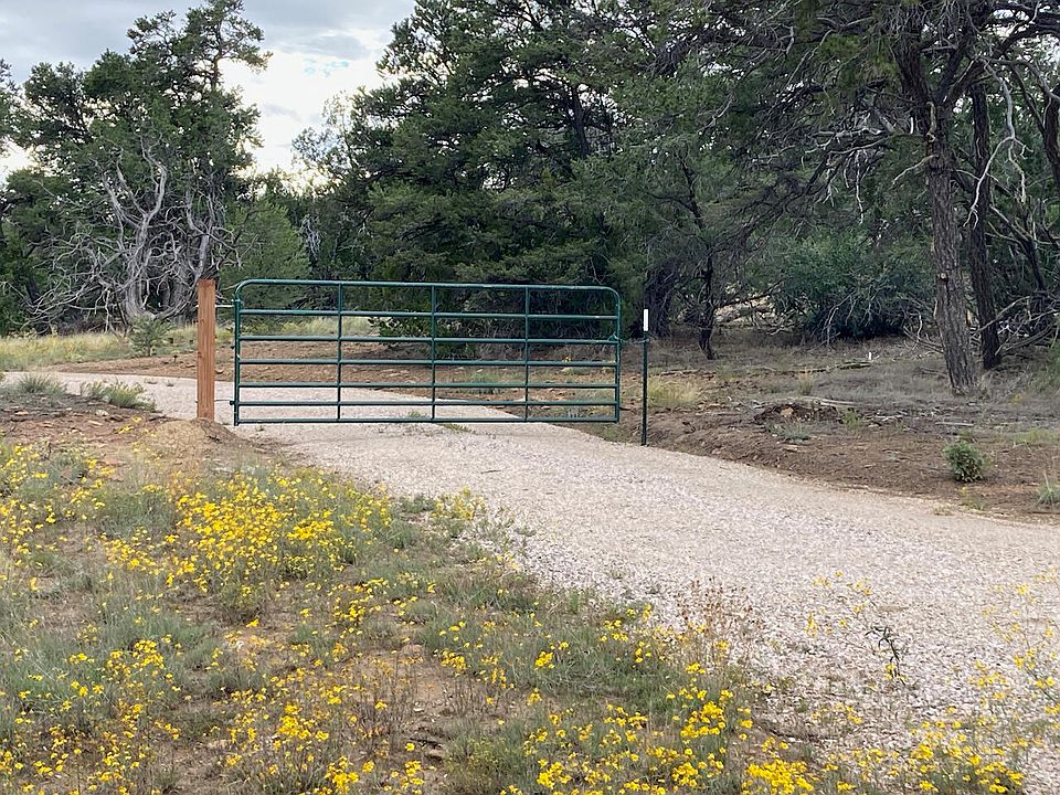 Peaceful and private spot to build your off-grid dream home! Three adjacent lots, all surveyed, combined for 10.6 acres. Two expansive meadows within the trees, and a smaller meadow with a 16x24 pier foundation for a cabin. Plans, drawings & construction docs are included. French drain, a 1550gal sunken cistern, 4x4 compost bins. Drainage ditches, house position, water management and storage have all been carefully planned for maximum benefit. A sturdy 8x8 shed with water catchment installed provides storage and an onsite water source while building. At 7400' elevation, it has abundant trees, mostly pinon, juniper and some tall ponderosa pines. Nearest neighbors live almost a half mile away and are friendly and helpful. 1300' graveled roadway and driveway for year-round use. No HOA.