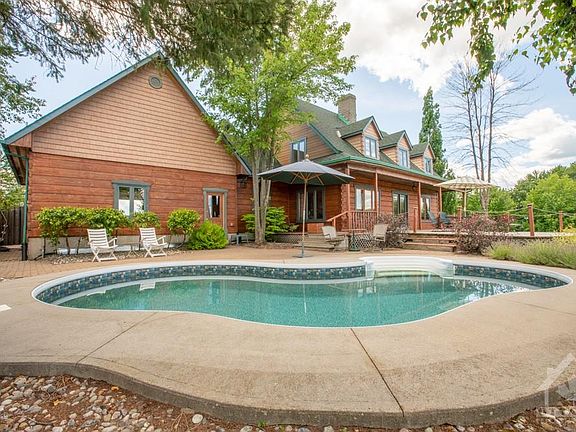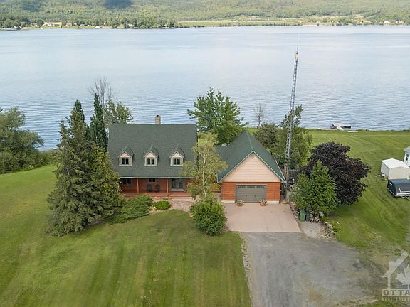 WATERFRONT! This immaculate 2 bedroom waterfront property has lots to offer! Proudly offering rustic softwood finishes, centrally located wood fireplace, heated inground pool, double garage and the Ottawa river flowing in your back yard. Central a/c & propane heated. Open main living space with kitchen island, dining and living room. One bedroom on main floor with a walk-in closet communicating to the main bathroom. The second level offers a loft-style mezzanine family room adjacent to the bedroom with a partial bath and walk-in closet. The unfinished basement currently used as a workshop and storage has great potential. 111ft of prime riverfront offering exceptional views and use. 24 hrs irrevocable on all offers.