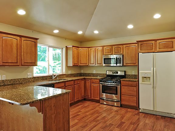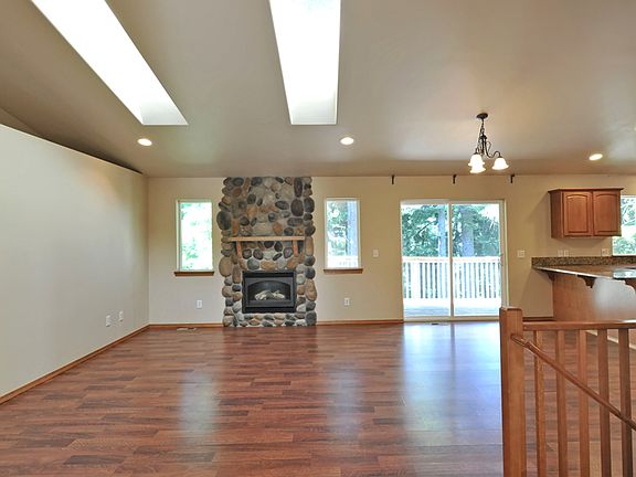 Private Setting: Large 5 bedroom, 3 bath home (over 3000 sq.ft.) with open floor plan; large living room with fireplace, dining room, large kitchen with stainless steel appliances, wood, and slate flooring, plus very large family room and lots of storage. This home has a front porch, large decks, and lots of natural light all day.
