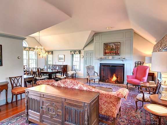 17 High Mark, circa 1928, sits atop Highmark Hill near the center of Chilmark. This unique compound is now exclusively offered for the first time in 49 years. Spread across 10.4 acres, the property consists of two parcels: 6.7 acres with the living spaces, and a 3.7 acre parcel for buffer or development. The larger parcel holds the main house, guest house, detached bedroom, artist studio, pool with outdoor shower and dressing room, tennis court, two car garage and workshop, with long, wide yards front and rear. Views to the Atlantic, Menemsha Pond, and Nomans are seen from many of the rooms of the main house and guest house. The main house has four bedrooms, living room with fireplace, dining room, office and gallery, kitchen and laundry room. The lower level has a library/media room, full bath, utility room, cedar closet and storage rooms. The guest house has 3 bedrooms, full bath and kitchen. The detached bedroom/bunk house has views to the Atlantic. Many of the amenities on this property allow for immediate enjoyment without special zoning permits and years of residency. Ample acreage allows for building expansion or relocation.