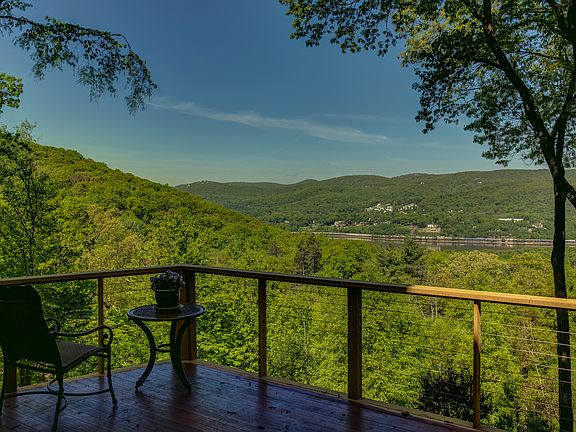 Breathtaking Hudson River views from almost every room! This completely renovated Arts & Crafts style home, with a contemporary flair is nestled on 2 beautifully landscaped acres, completely fenced for your privacy. Floor to ceiling windows, skylights, & the wrap around deck allow you to surround yourself with specimen plantings & majestic river views! Welcoming foyer, Den (could be used as a 1st floor BR) w/fpl dr out to deck, Fl bth, Media closet, Open LR w/ cath ceilings, surrounded by floor to ceiling windows, Huge, open center island kitchen, w/ drs out to 2 level deck, has granite, maple & glass cabinets, breakfast bar, wine cooler, 2 Bosch dws, ice maker, double wall ovens, & 6 burner Viking stove, pass through w/ wet bar to FDR w/ cathedral ceilings & skylights, sunken den/office,w/ dr out, 500 bottle wine cellar, BR w/ full bth, MBR ste w/ fl to ceiling windows, full bth includes steam shower & jacuzzi, WIC w/ laundry. HW flrs throuout. bth w/ steam shower, jacuzzi