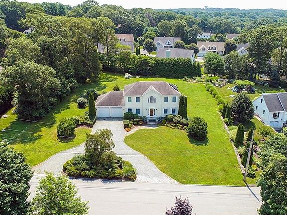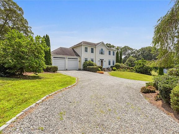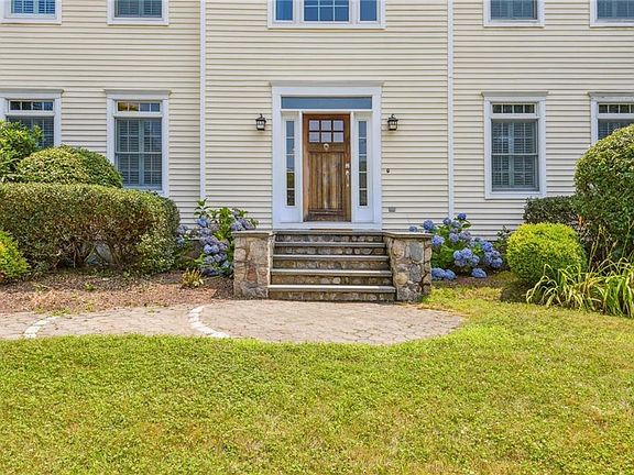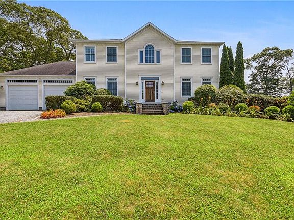 Just minutes from Watch Hill beaches and downtown Westerly, this stunning colonial sits on a beautifully landscaped, oversized lot and a quiet street with seasonal views of the Pawcatuck River. Currently 3 large bedrooms (however the layout of the primary suite could easily be reconfigured to add a fourth bedroom) and 2.5 baths. Hardwood floors throughout. Primary suite features large walk-in closet, full bath with tiled shower/tub, and an adjoining room for a nursery, office, or yoga space. The first floor boasts living room, dining room, den, and a spacious eat-in kitchen with granite countertops and refinished hardwood floors leading to an enormous back patio perfect for al-fresco dining and entertaining. Finished basement with space for a home gym, office, or game room. Two car garage. First floor laundry room. Outdoor shower. Solar panels are fully paid off which generates income and substantially subsidizes electric bills. The big back yard with beautiful lawn has room for potential auxiliary dwelling unit. Rare house with so much upside...