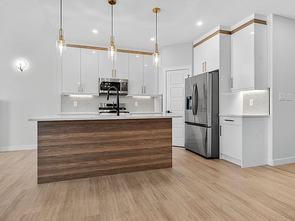 RARE FIND! This half duplex with dbl attached garage offers the space and feel of a detached single-family home. Built by Sunnyview Homes- Only two of its kind in the area. The main floor features a bedroom and a full bath. The open to below living room boasts an electric fireplace with feature wall. The upgraded kitchen with a central island, quartz countertops, 2-toned ceiling-height cabinetry with built in organizers, water line to the refrigerator, a gas line to the stove and a corner WI pantry and a good sized dining area. Going upstairs you'll find glass railing with maple handrail and step lighting, a bonus room, WI laundry room with sink. The primary bedroom features a WIC, coffered ceiling, accent wall, a luxurious 5-pc ensuite including a 6-jet Jacuzzi tub. This level has 2 additional good sized bedrooms sharing a 4 piece bathroom. Situated on a generous lot, this home offers a SEPARATE SIDE entrance to the bsmt. The garage is equipped with a gas line and floor drain. Appliances included!