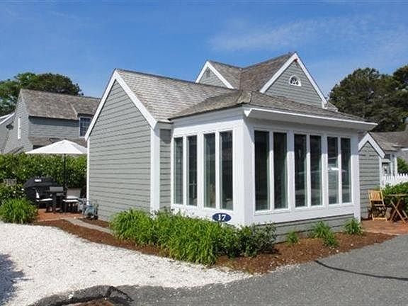 Fabulous Ocean Bluff views from this absolutely charming seaside, one bedroom villa in Maushop Village that sleeps 5. Steps to your own private, deeded ocean beach. Many upgrades by this owner. Open floor plan with cathedral ceiling great room, open to kitchen and GORGEOUS sunroom that has water views, cathedral ceiling and a day bed. Wide pine floors throughout. Two patios for plenty of space to entertain. Lots of storage with 3 outdoor sheds, attic and crawl space. Being sold fully furnished. This replica of a Nantucket style cottage offers the quintessential Cape Cod experience surrounded by beach plums and cobblestone walkways. Just a short walk to the Popponesset Marketplace, Beach Club, New Seabury Country Club and short drive to Mashpee Commons! Come see if this is the ONE for YOU!