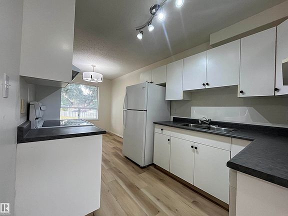 Great 2 storey, 2 bedroom townhouse with one and a half baths in the heart of Devon. Nicely refreshed with lots of recent updates including paint, carpet & vinyl plank flooring, light fixtures, door hardware, etc. This move-in ready West facing unit is in a small, well managed complex (8 units) and offers privacy, a spacious common area, and dedicated parking behind the property. Low condo fees - only $175/month, and conveniently located walking distance to most amenities. Full, unfinished basement offers future development potential. Unbeatable value and ready to call home!
