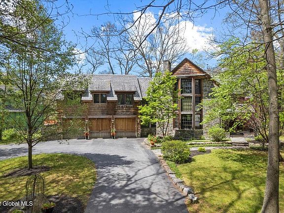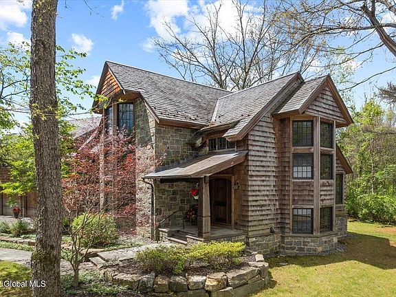 Saratoga rustic elegance collides w/master craftsmanship, at this downtown, showstopper, timber frame, DOUBLE LOT compound. Built w/high end luxury and attention to detail, this bright, open home features four fireplaces, radiant heat, solid wood doors, blue stone & slate, Canadian barn erected wood, hand hewn beams, reclaimed cypress wood, hand textured Tuscan style walls & gleaming red oak hardwoods throughout. Entertain before & after the horse races in the spacious gourmet kitchen w/high end appliances, custom cabinetry & rough-cut granite countertops. Cool off after a day at the racecourse in the stunning inground lagoon pool or catch some rays on the spacious blue stone patio overlooking the tranquil State Park. Situated in a PRIME location! Schedule your private tour today.