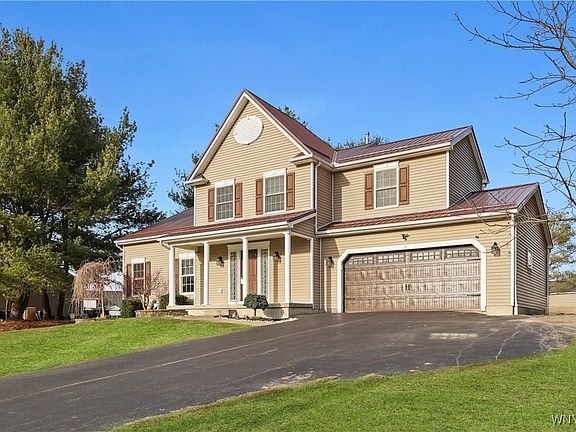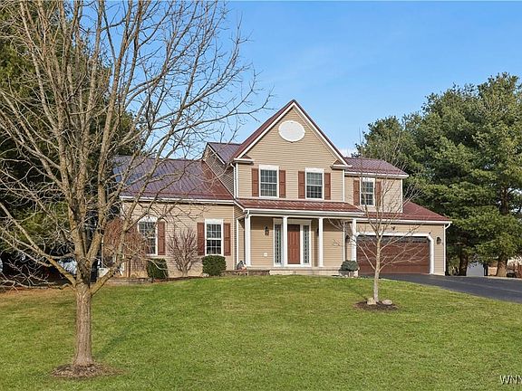 Stunning Colonial style home situated in desirable Hilltowne neighborhood! This beautiful home sits on a half acre lot featuring a great size backyard with a beautiful covered patio with tile floors & hot tub. Vinyl siding & metal roof allow for maintenance free living. Walk through the front door where you will find the grand foyer. Continue to the spacious family room featuring beautiful hardwood floors, great ceiling height, and plenty of natural light. The kitchen is magnificent, a true chef's dream featuring cherry cabinetry, granite counters, tile backsplash, large island w/ ample seating space, coffee station, wine chiller, and an abundant amount of cabinet and counter space. Good size dining space great for entertaining featuring a decorative gas fireplace. There is a sliding glass door off of the kitchen leading you directly to the covered patio & hot tub. First floor laundry room for convenience & 1st floor half bath. Head upstairs to find the primary suite featuring a huge walk in closet & a beautiful bathroom featuring a walk-in shower & double vanity. Two additional bedrooms and additional full bathroom. Don't forget to check out the finished basement offering excellent additional space to entertain. The basement features luxury vinyl plank flooring, a large island, wet bar, & half bathroom. Backup generator, updated mechanics, 2.5 car garage, large shed; This home truly has it all! 2025-05-07