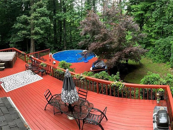 Is privacy what youre looking for...this is the house for you in the private, gated community of Lake Mohawk. This one owner, custom built lake home is nestled on two wooded lots. The hardwood foyer leads to a newly remodeled eat-in kitchen and family room. All new stainless-steel appliance, granite countertops, and carpet. This open-floor plan looks out onto the large two-story deck with an above ground pool incorporated into it. This is the perfect PRIVATE back yard. Extra large living/dining room with cathedral ceiling is perfect for large family entertaining. Bedrooms 1 & 2 and the large master suite are located on the second floor. Master bedroom features a cathedral ceiling and new carpet with updated tile floor and marble countertop in the bathroom. If that is not enough room for entertaining, venture downstairs to the finished basement which includes a fabulous game room, wet bar, and bonus room with attached full bath that is currently being used as the 4th bedroom but could be a workout room, or office. Golf course, water skiing, year-round fishing, tennis courts, walking path, 3 beaches, playgounds, and community clubs and activities are all waiting for you here at Lake Mohawk. Agent owned.