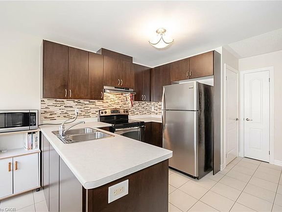 Enjoy Prestigious Adult Living at its Finest in this gate community of Rosedale Village. Lovely Adelaide Model. 9-hole private golf course, club house, indoor pool, tennis courts, meticulously maintained grounds, fabulous rec centre & so much more. This beautiful sun filled condo townhouse Bungalow boasts a gourmet eat-in kitchen overlooking the backyard. Featuring an eat-in area with a garden door leading to the large back porch with patio area for summer entertaining. Kitchen boasts stainless steel appliances, dark cabinetry and a ceramic floor & backsplash. The inviting Great Room has easy access to the kitchen & dining room. It has 2 sun filled windows overlooking the backyard & lush broadloom flooring. Dark gleaming hardwood flooring in the hallway & dining area that overlooks the front yard and features a picture window and a half wall to the foyer making for an even more open concept feel. Primary bedroom overlooks the backyard & boasts a walk-in closet, picture window & a 3pce ensuite bath with a walk-in shower and ceramics. The generous sized second bedroom is located at the front of the house. The main 4pce bath is conveniently located to the bedrooms and there is a linen closet & coat closet nearby. Garage access into the house from the sunken laundry room. Large privacy hedge in backyard, interlocking driveway, oversized front porch for relaxing after a long day, lovely front door with glass insert & many more features to enjoy. Don't miss out on this beautiful home in a secure community - enjoy all that Rosedale Village has to offer! **RENTAL ITEMS**