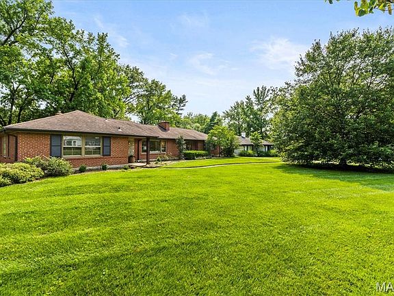 Exceptional ranch-style residence located in the highly acclaimed Ladue School District. This beautifully maintained home offers an unparalleled combination of convenience, comfort, and value—set on one of the largest, most level, and picturesque lots available in Ladue at this price point. Designed for effortless one-level living, the home features an open floor plan that welcomes you into a gracious living room with a fireplace, seamlessly flowing into the dining area. The updated kitchen is equipped with modern appliances and provides direct access to the rear patio, complete with an outdoor fireplace and a tranquil water feature—ideal for entertaining or quiet relaxation. An oversized, attached two-car garage opens into a spacious family room with fireplace, creating a warm and inviting everyday living space. Additional highlights include main floor laundry and a generously sized primary suite with dual walk-in closets and a private en-suite bathroom. Two additional main-level bedrooms include one en-suite, while a full hall bath serves guests and the third bedroom. The finished, walkout lower level offers outstanding additional living space, featuring a large recreation room with a pool table (included), a full bar, and an additional bathroom—perfect for hosting gatherings or enjoying quiet evenings at home. This remarkable property presents a rare opportunity to enjoy expansive outdoor space and a thoughtfully designed interior, all in a prime Ladue location!