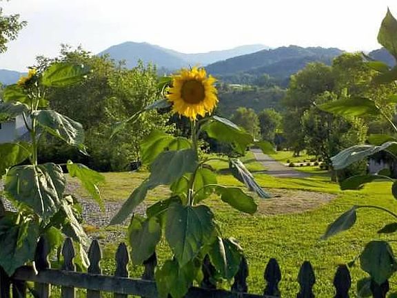 Absolutely stunning, peaceful setting, in the rolling hills of Leicester. Only 9 miles to Patton Avenue, make this amazing getaway a convenient year-round home. The house sits at the end of a dead end road, so absolutely no traffic, and the only noise you hear are the birds chirping and the occasional lawn mower down the block! Sunsets, star-filled skies, and surrounding views that will WOW you and remind you to stop and smell the roses (yes, there are roses too!). Over an acre of rolling land. Eat-in kitchen plus LARGE dining room that has been used as a home office, an art studio, a playroom, and a work-out room.